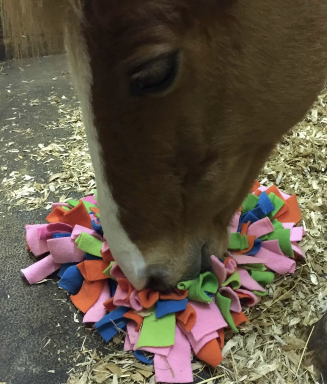 Bear in mind your routine can include certain items that make a horse feel more at home if they travel to competitions – I have one lovely dressage client whose horse has a set if cuddly teddy bears that hang in his stall for just this reason – they can be moved with him if an over night stay is required and he can feel at least a little ‘at home’