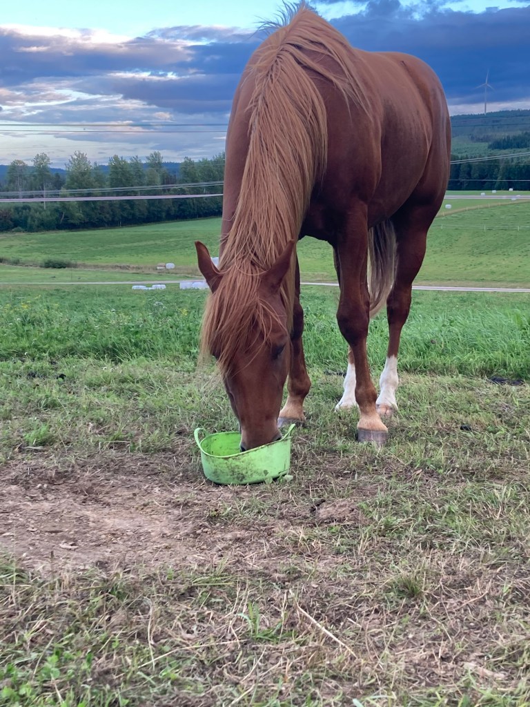 Living in a larger group with more movement in larger older mixed grass and herb pastures or on tracks has been shown to promote greater movement and more overall fitness in horses generally so it is a good solution for horses with PSSM.