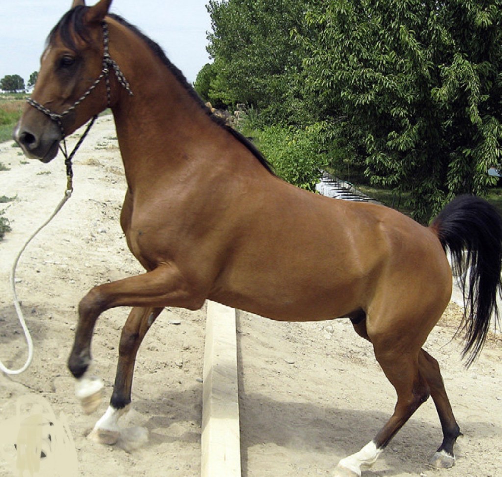If you want hind end muscles, ride slowly up hills on a loose rein. If you can do this and add in a few little obstacles along the way to step over, you will improve the body control and proprioception for your horse into the bargain! Stepping slowly over jump poles on stands somewhat higher than cavaletti (knee height), having slowly raised the poles inch by inch from the ground up so that the horse learns to use his legs and his body awareness builds the very best kind of strength and range of motion for a jumper. It helps the joints to be flexible and adds strength to the muscles- a little like tai chi for horses!