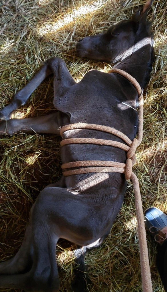 A Facebook friend recently put up some pictures of her ‘dummy foal’ and that reminded me about the veterinary technique that can help some ‘slow to respond’ foals (& calves & lambs) in those very early hours of life…..