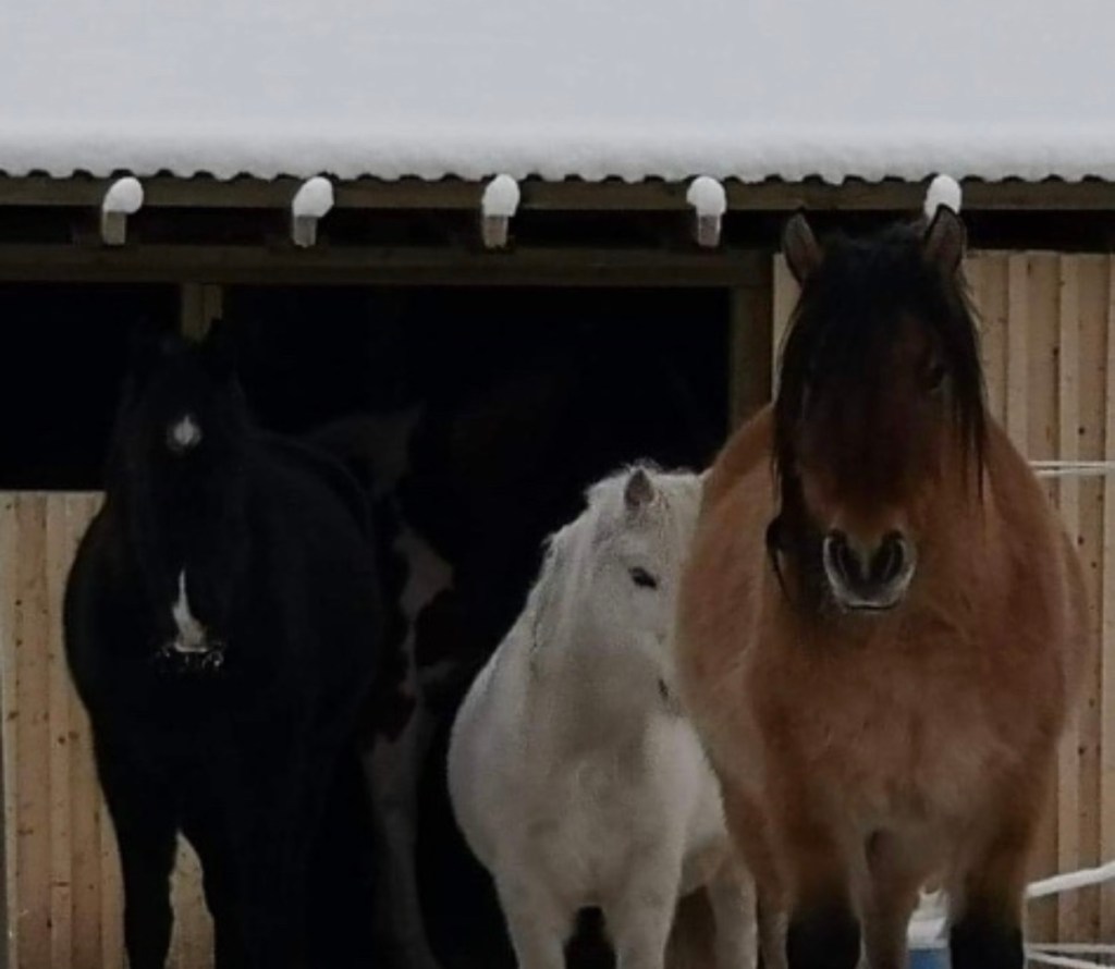 Our horses eat from the same fields both summer and winter – in winter their hay and haylage grasses and the necessary gut bacteria are similar to their summer needs.