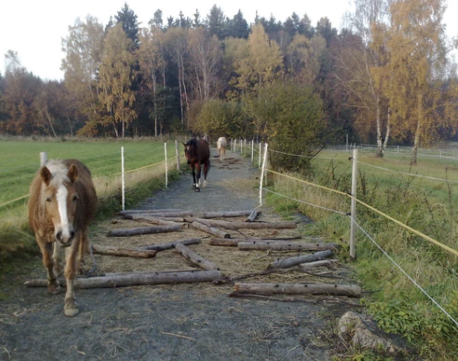 I’m looking at the paddock paradise systems with adaptations for winter, such as reducing easy access to feed at certain times of the day (there are timed feeders that can do this for you or we can shut a gate in front of a feeder, making smaller hay nets and cut wood the only option to go and look for on our track). We could provide all feed with physical challenges to get it such as reaching up, stepping over or rolling a hay ball around. We can offer a portion of ‘fodder’ in the form of branches and brash.