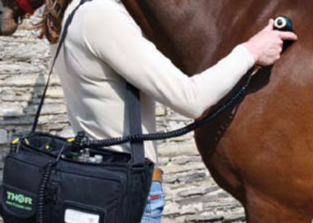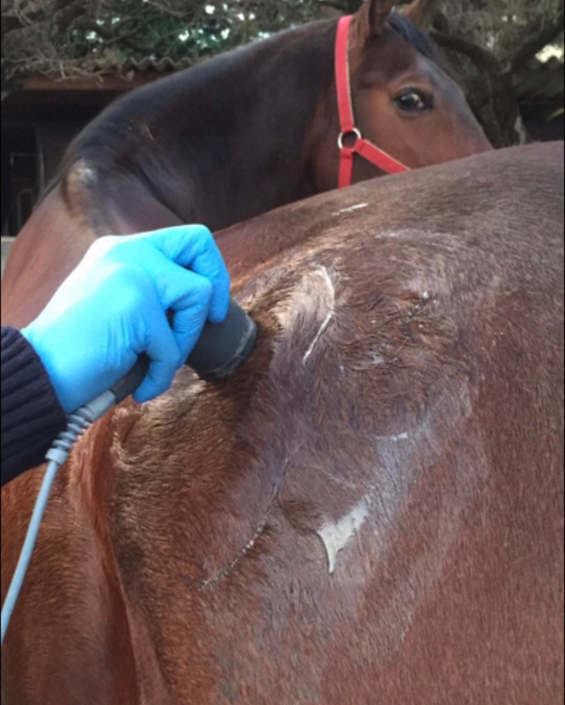 Again this is a therapy for a trained professional as it’s misuse can result in overheating tissues. It is usually provided by an equine veterinary rehabilitation therapist, veterinarian or physiotherapist.