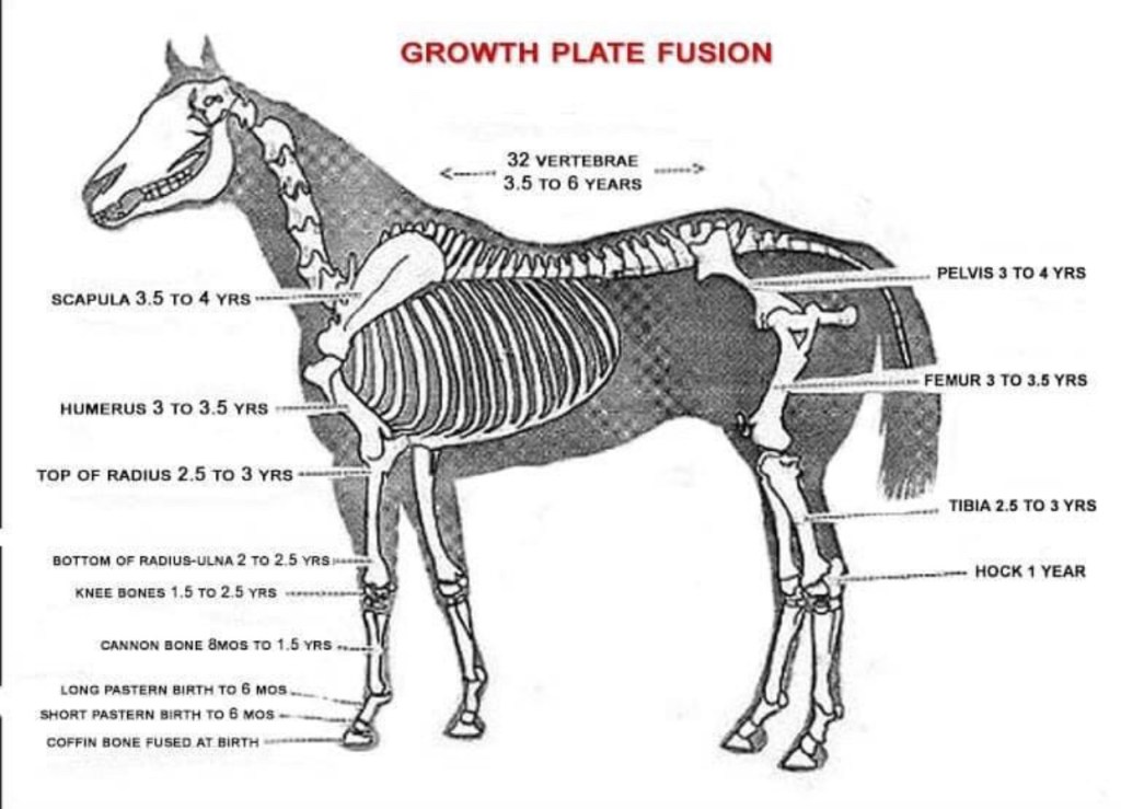 Now horse breeds all mature at different speeds but for the most part none of those breeds have fused growth plates on their back before the age of three and a half years.