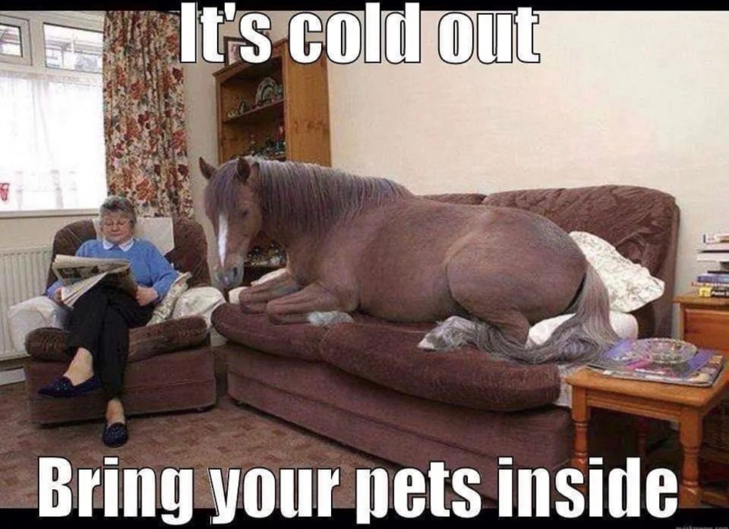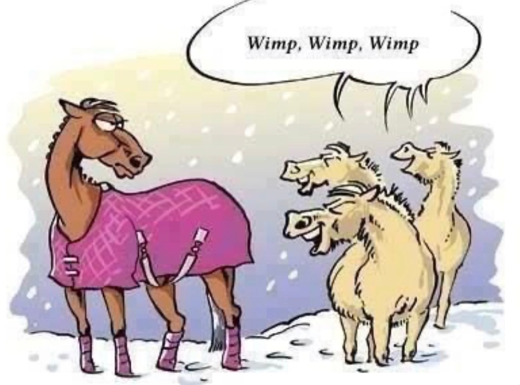 We often curtail freedoms ‘for their own good’ or for our convenience. A fluffy horse gets too hot and sweaty when worked so needs clipping (for our convenience) so needs a rug and the constraints to his movement and natural interaction with other horses that entails (mutual grooming isn’t the same through a rug). I am not suggesting that you don’t clip or don’t rug your clipped horse but more that you think about what freedoms you take away and what you can offer.